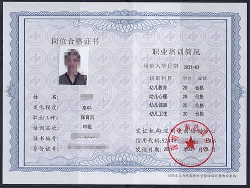 保育员证