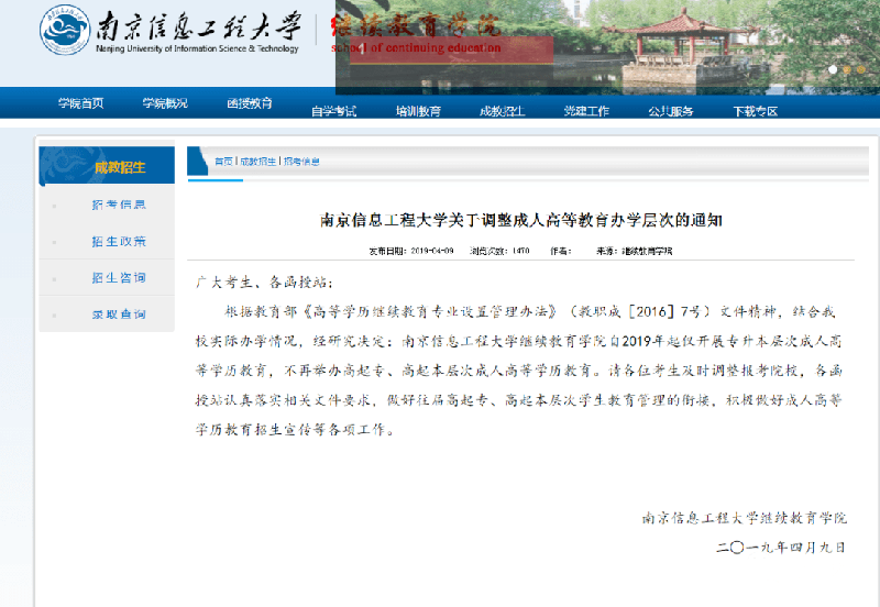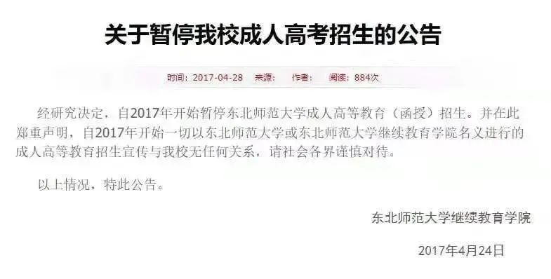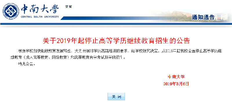 每年不定时都会有几所学校发布公告,成人高等教育停止招生。除了近期的浙江大学和南京大学,自2017年起北京大学正式取消成人继续教育后,清华大学、北京师范大学、东北师范大学、华中科技大学、中南大学……很多学校都在逐渐取消成人教育招生。